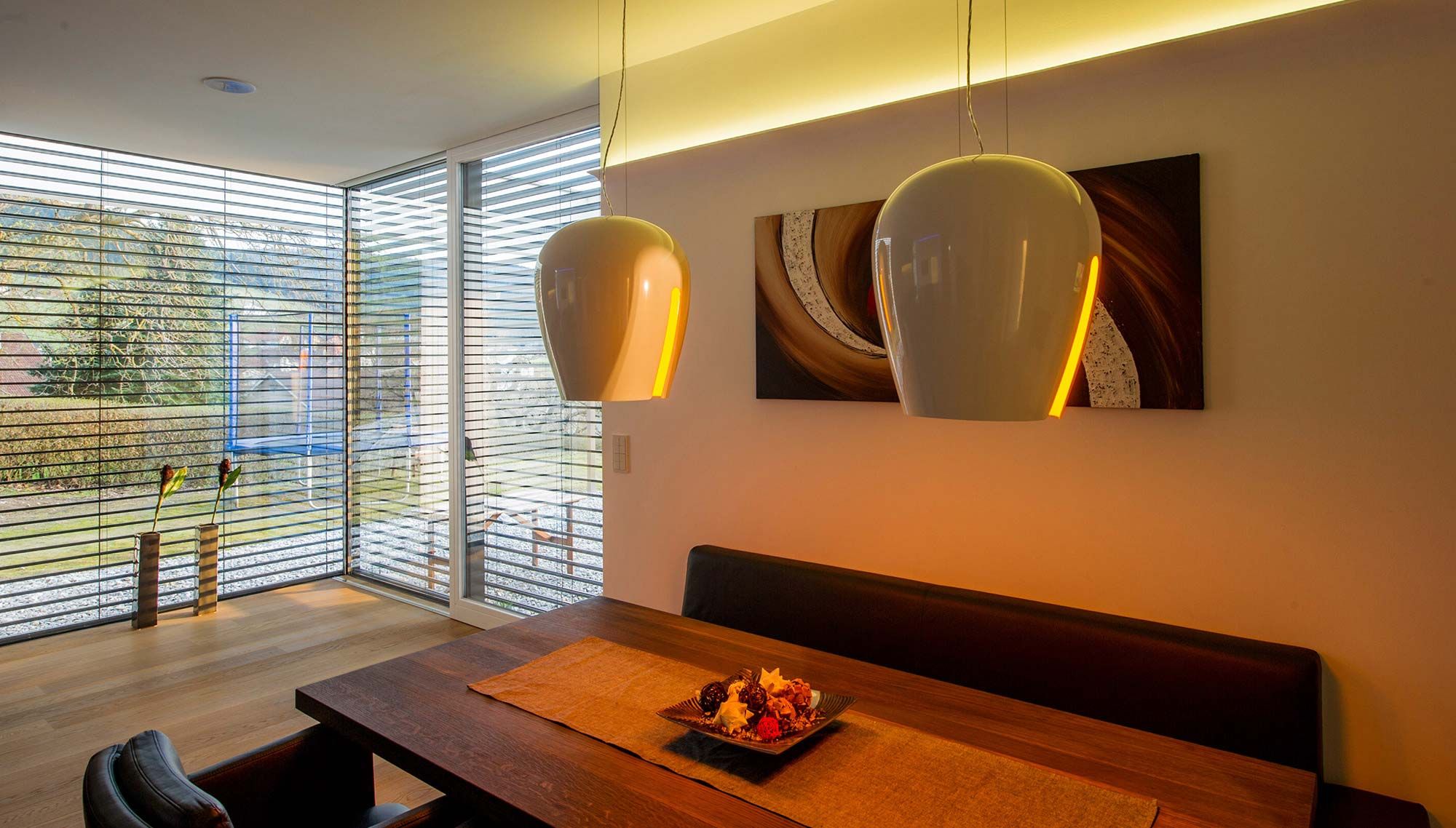 System zacieniania pracuje w pełni automatycznie. Kontroluje temperaturę i natężenia światła w pomieszczeniach, monitoruje położenie słońca. Jeśli wewnątrz zrobi się zbyt ciepło, żaluzje/rolety automatycznie zmienią swoją pozycję. Znajdą się również w bezpiecznym położeniu gdy nadciąga burza. Po zachodzie słońca automatycznie wszystkie się opuszczą.