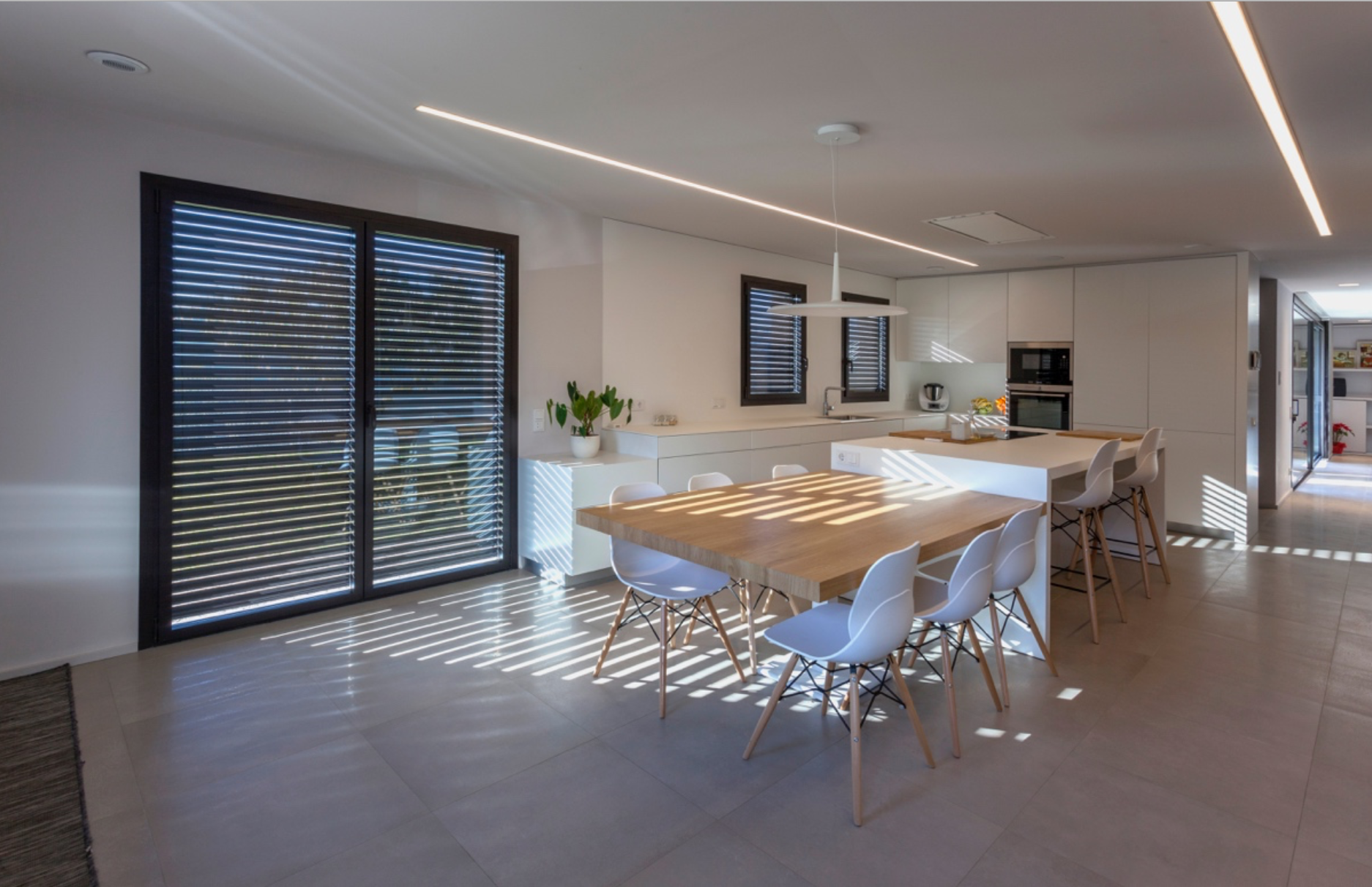 Współpraca zacieniania z ogrzewaniem i klimatyzacją, maksymalne wykorzystanie zasobów naturalnych: w lecie system zacieniania zapobiega przegrzaniu i oszczędza na klimatyzacji, zimą może oszczędzać na ogrzewaniu,